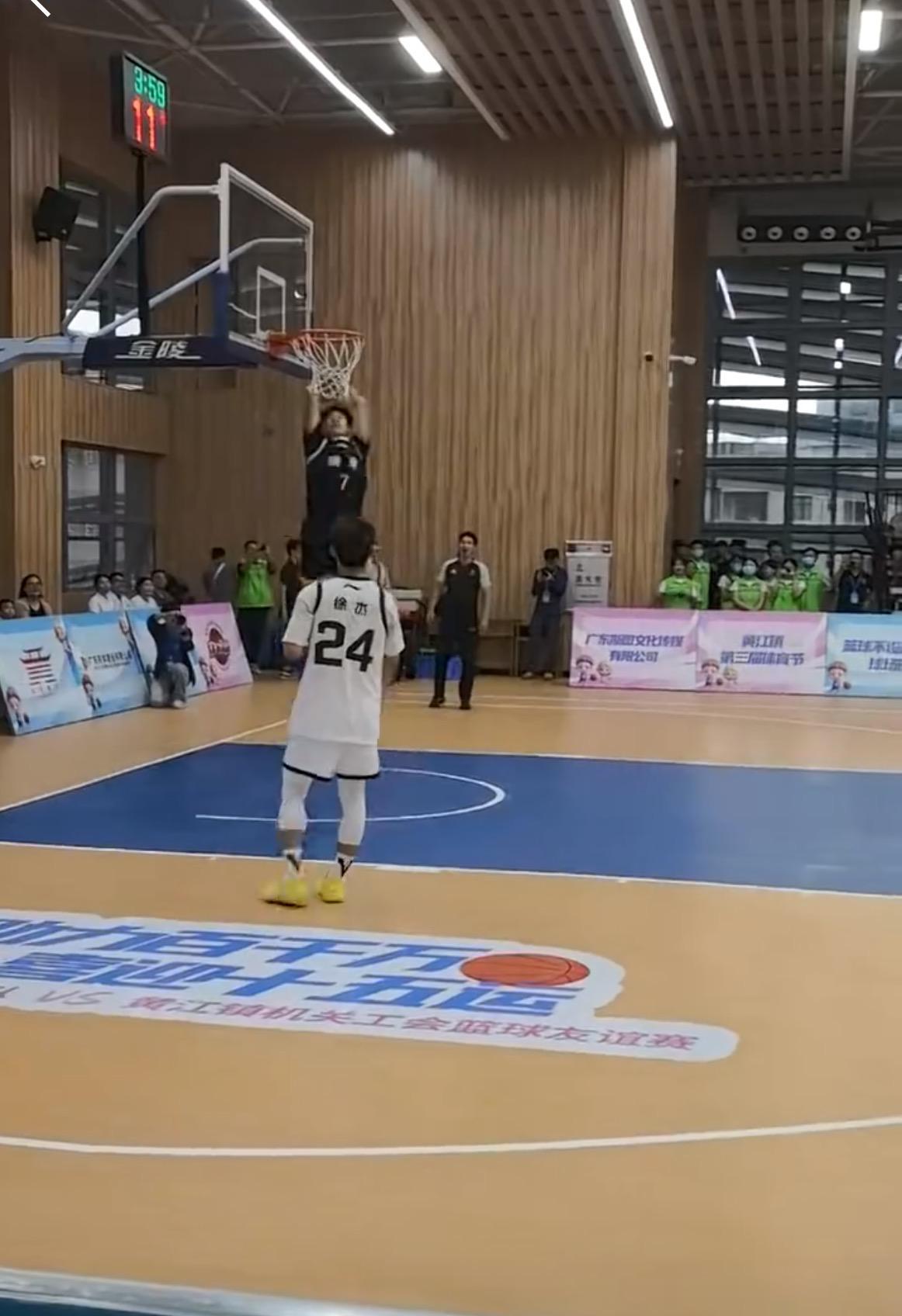 本场比赛星味十足,广东全运会代表队成年组这边,徐杰、赵睿、周鹏、任骏飞、焦泊乔等悉数上场,U22代表队也有王浩然、徐昕、黄明依、杨溢等大家都非常熟悉的青年俊杰。不过这场比赛更多是表演赛性质,双方在40分钟内轰出237分的总分,可见比赛强度并不大。比赛中两队也频繁整活,像徐杰和徐昕就玩起了中锋之间的互相背打。首先是徐杰持球主动来到低位,挥手示意低位背打徐昕,在被徐杰单打成功后,徐昕也不示弱,下个回合也在低位打了徐杰一个。这俩“中锋”互相背打,引起了现场一片欢笑。