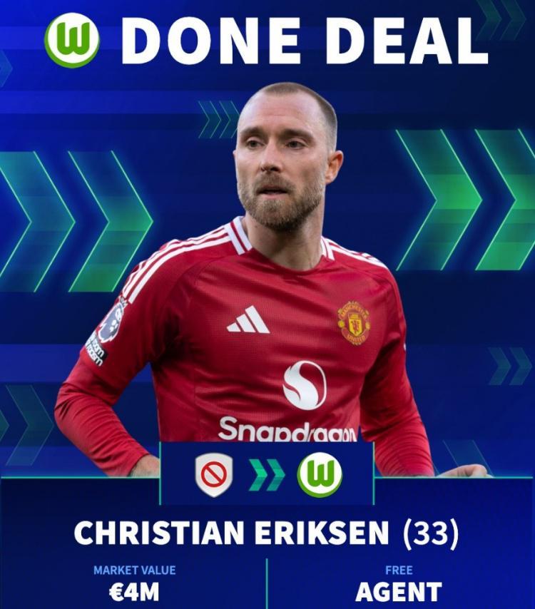 直播吧9月11日讯 沃尔夫斯堡已经官宣免签33岁丹麦中场埃里克森,体育总监塞巴斯蒂安-施因德洛尔茨接受官网采访谈及相关话题。