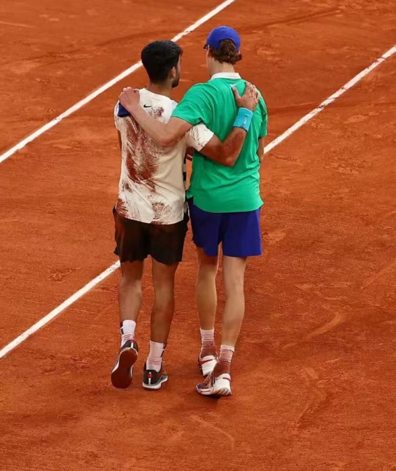 我很想分享我最喜欢的一场比赛,2025年的法网男单决赛,阿尔卡拉斯对战辛纳。