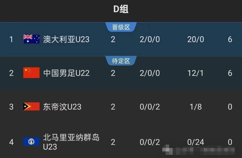 2026亚足联U23亚洲杯预选赛于9月3-9日在陕西省西安市进行。前两轮战罢,中国队和澳大利亚队均取得两连胜,中国队因净胜球劣势暂居小组第二位。