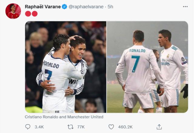 瓦拉内没有发表言论,而是发布了两张他与C罗效力皇马时的照片。他们将会在曼联重逢。