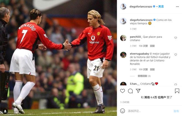 曼联传奇助教费兰也没有发文字,而是发布了一张此前C罗在曼联时期的动图。