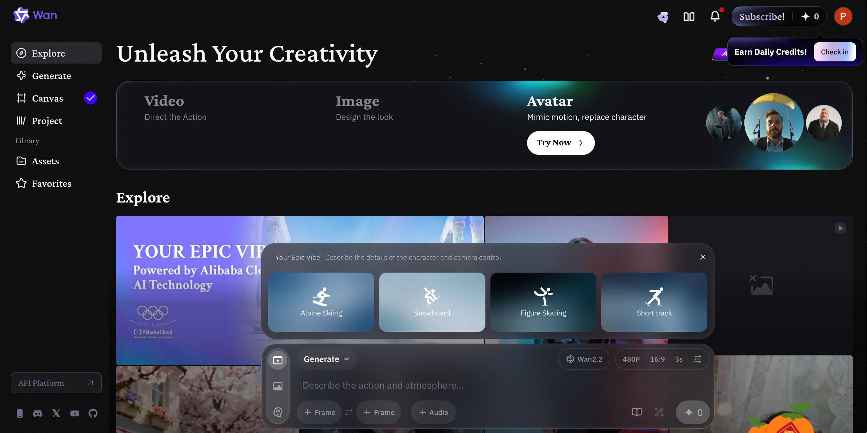 来自不同国家和地区的冬奥爱好者,可以基于阿里云万相AI,通过文字描述生成与花样滑冰、短道速滑、高山滑雪、单板滑雪等项目相关的影像作品。参与者不需要掌握专业拍摄或剪辑技能,也无需理解复杂的运动技术细节,只需用语言表达自己心中的冬奥瞬间,即可完成创作。