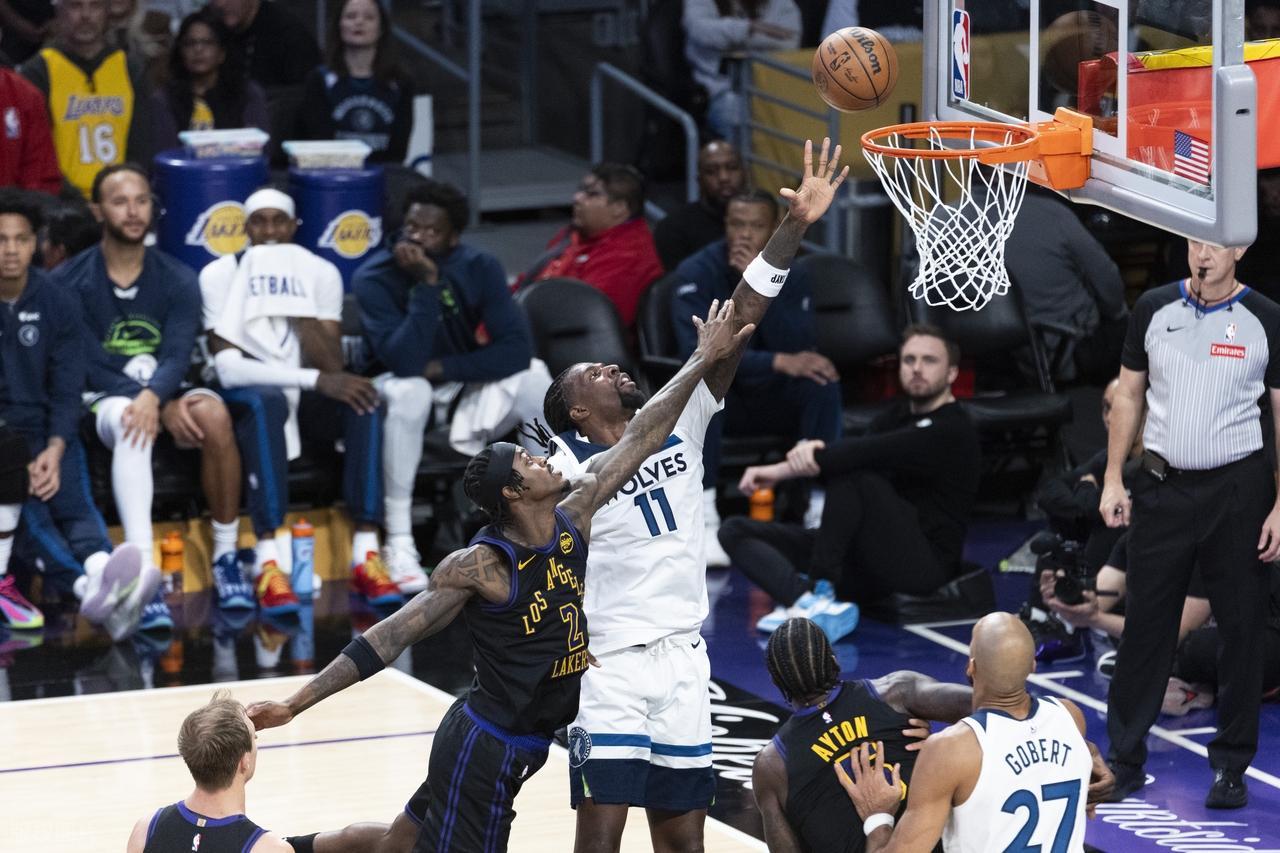 北京时间3月11日,NBA常规赛迎来湖人与森林狼的比赛!这场湖人与森林狼的卡位战,开场就充满戏剧性。东契奇一上来就连续打铁,状态低迷得很,显然是受场外感情因素的影响,手感迟迟没能打开。另一边,森林狼的爱德华兹也好不到哪去,一记抛投命中,竟是他上半场唯一一粒进球。湖人这边开局更是拉胯,前5分钟里,只有斯玛特一记上篮拿到2分,兰德尔的三分才勉强为球队续上火力。比赛中段,八村塁的抛投加上东契奇的放篮,湖人总算稍有起色,而森林狼的进攻同样低迷,双方陷入低效拉锯。后半段,兰德尔上篮打成2+1后,李凯尔和麦克丹尼尔斯终于找到手感、多点开花,东契奇则及时找回状态,串联肯纳德和八村塁咬住比分。第一节两队打得都堪称糟糕,单节战罢,湖人16-21落后森林狼。