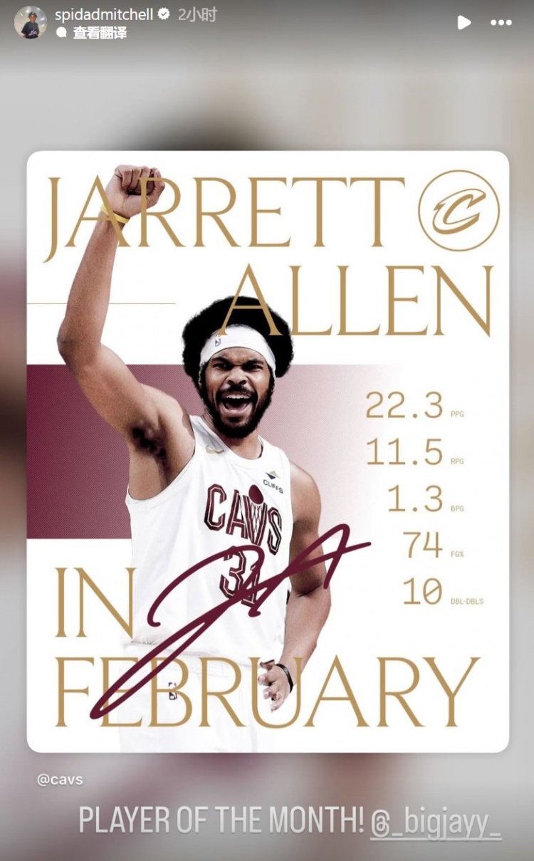 开云体育-贾勒特·阿伦二月场均22.3分11.5板&命中率74% 米切尔:月最佳 2026-03-05 19:25:03 德甲 28℃ 0 3月1日讯 今天,骑士官方晒出了贾勒特·阿伦二月份的数据,场均能得到22.3分11.5篮板1.3盖帽,投篮命中率74%,得到10次两双。队友米切尔转发评论道:“月最佳球员。” 上一篇:开云体育-张伯伦转会凯尔特人,已抵达格拉斯哥签约|罗马诺|亚历克斯-奥克斯雷德|英格兰|威尔特-张伯伦|俱乐部_新浪体育_新浪新闻 下一篇:开云体育-有延迟😅内马尔与对手贴脸争吵顶牛后夸张捂脸倒地,两人均染黄 相关推荐 【英超】孙兴慜助攻凯恩破门 热刺客场1比1平水晶宫 开云体育-官方:米兰因在对阵那不勒斯时上下半场都迟到,被罚款25000欧 开云-神灯护塔!终结7连不胜,藏了半套主力枪手终于豹变 开云-明天勇士客战尼克斯 追梦&波尔津吉斯&梅尔顿&霍福德缺阵