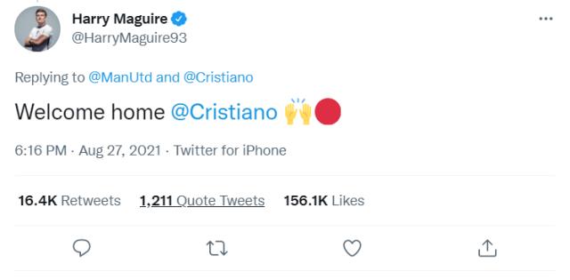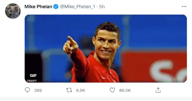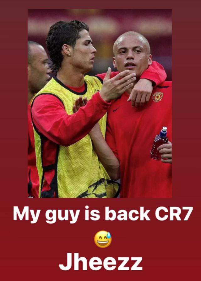 曼联传奇助教费兰也没有发文字,而是发布了一张此前C罗在曼联时期的动图。